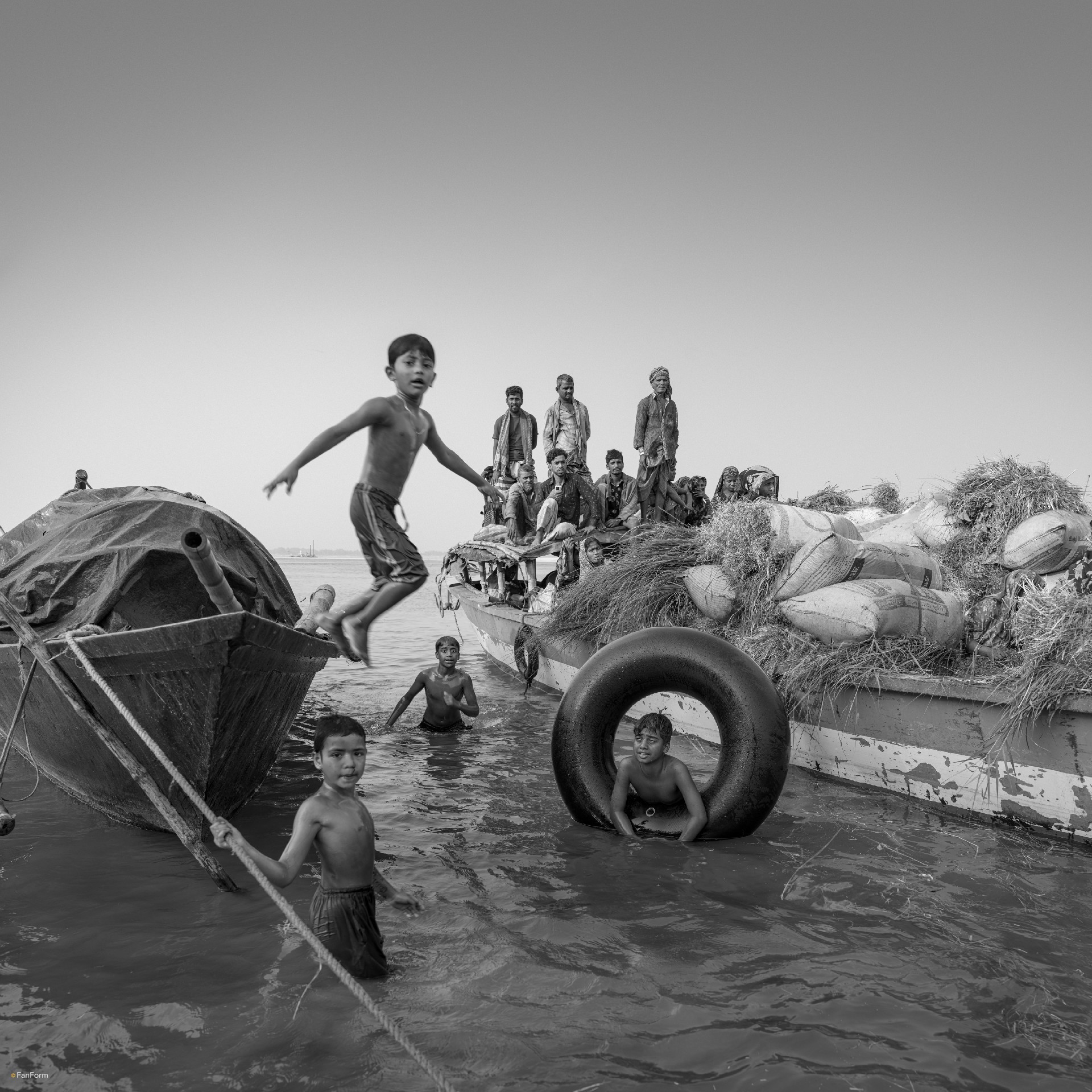 This series of photographs, taken in Bangladesh in 2025, documents the daily lives of people along the banks of the Jamuna River. As a major tributary of the Ganges-Brahmaputra River system, the Jamuna flows through Bangladesh, serving as the lifeblood for local residents' livelihoods and daily existence. As the “Mother River,” it nourishes the surrounding farmlands, sustains fisheries and water transportation, and shapes unique ways of life through the floods brought by the monsoon. The rhythm of riverside life is inextricably linked to the river's tides and the monsoon. Tradition and modernity intertwine with the flow of the river, forming a culture of long-term symbiosis between people and nature on this land.